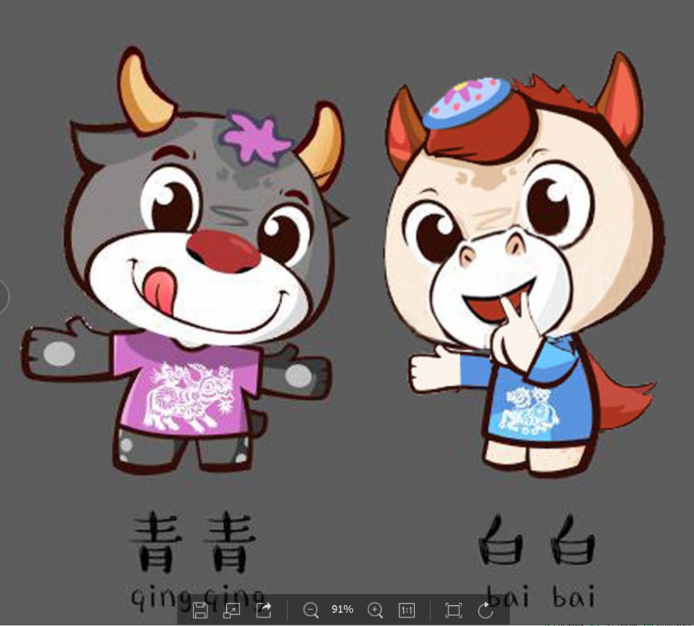 吉祥物以達斡爾民族“青牛白馬”傳說“位題材。 以卡通為主,整體形象活波可愛,靈動,卡通性強烈些。皆合民族服飾。 附件圖片為民族服飾元素和之前的logo 簡單解釋:【穿上民族服的青牛白馬】