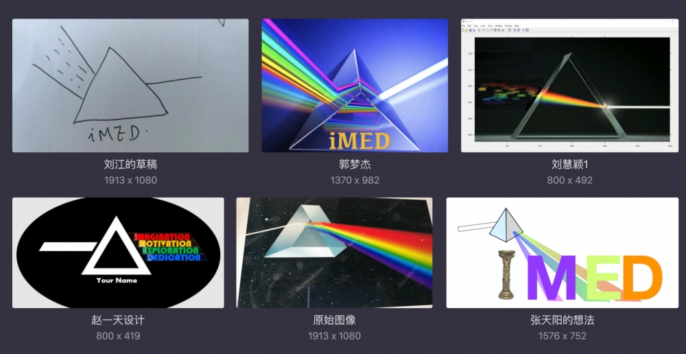 - 確定"團(tuán)結(jié),專注,堅(jiān)持"作為IMED團(tuán)隊(duì)的文化。有關(guān)這個(gè)文化的圖形表現(xiàn),參考光譜三棱鏡,但是我們把分光原理變成聚光原理。不同顏色波長的光,經(jīng)過IMED的文化融合,折射,聚焦,形成一條專注的長長的白光射出,產(chǎn)生專注力。 - iMED這些文字放在三棱鏡的左邊,聚焦的一束光放在右邊 - 更加傾向于上圖中以趙一天的設(shè)計(jì)為原型 - 這里定制的logo用于貼在團(tuán)隊(duì)定制服裝的背后。
