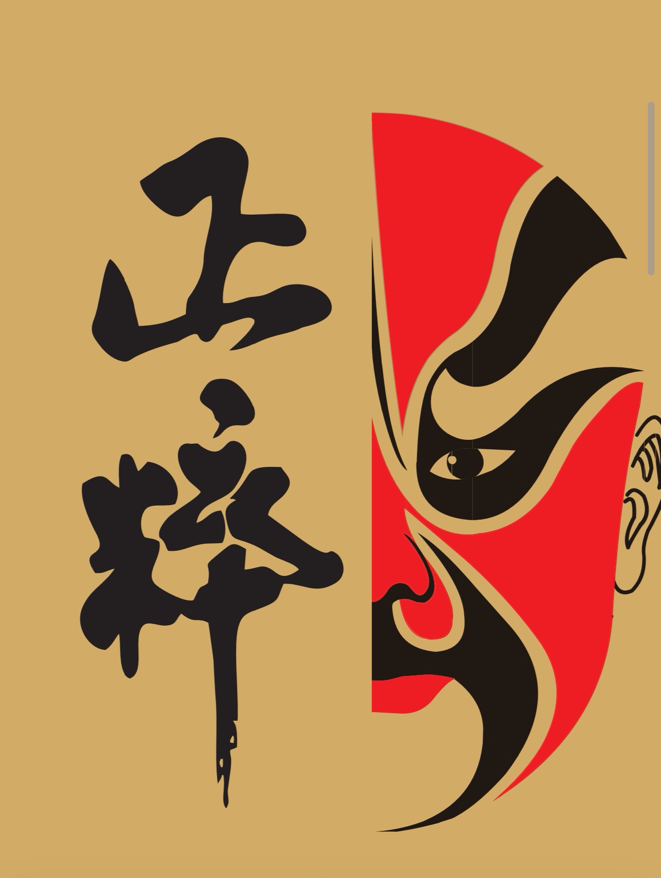 - 用京劇臉譜元素做為輔助圖案,正粹二字豎排,大氣,有氣勢,顯得正統(tǒng),正宗,純粹。